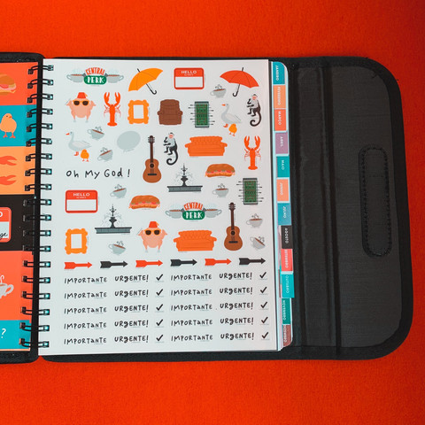 No fim das contas, acabei me convencendo pelo planner de Friends da Imaginarium, mas só consegui fazer isso através de uma revendedora do Rio de Janeiro, pois nas lojas de Santo André já estava esgotado. A agenda já ganha qualquer fã da série desde a capa. E claro, as diversas ilustrações por dentro (e adesivos).